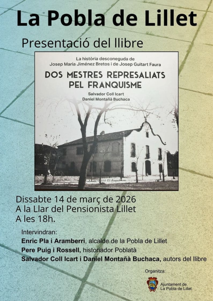 La presentació es fa dissabte 14 de març a les 18 h a la Llar del Pensionista de la Pobla de Lillet. A l’acte hi intervenen Enric Pla i Aramberri, alcalde de la Pobla de Lillet; Pere Puig i Rossell, historiador poblatà, i els autors del llibre, Salvador Coll Icard i Daniel Montañà Buchaca. L’entrada és gratuïta.