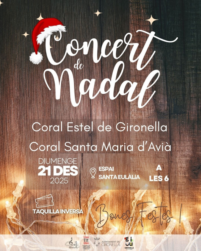 El 21 de desembre de 2025, a les 18 h, l’Espai Santa Eulàlia acull el Concert de Nadal amb la participació de la Coral Estel de Gironella i la Coral Santa Maria d’Avià.